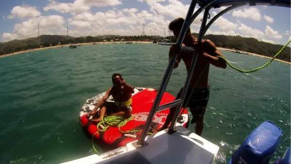 15 minute donut ride behind a super fast speed board. Hold on tight.